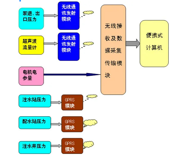 功能:测量泵进出口压力、出口流量,利用无线蓝牙技术将信号传输至主机。