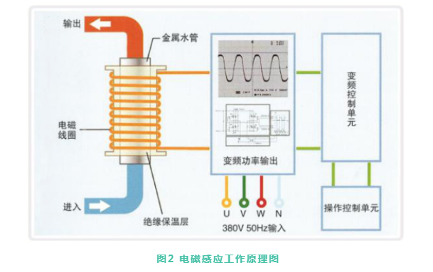 电磁感应工作原理:将电能转换为热能,在控制器内由整流电路将50Hz的交流电压变成直流电压,再经过控制电路将直接电压转换成频率为22KHz的高频交流电压。高频交流电压流过缠绕在金属材料管外的高频导线,高速变化的磁场内部产生的磁力线切割金属材料时产生无数小涡流,使金属迅速加热达到升温,整个过程是“电-磁-热”的高效转换。